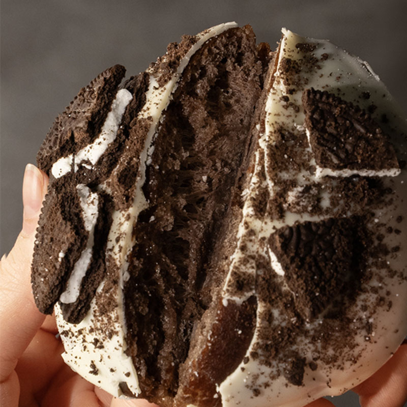 ホワイトチョコの甘さに、クッキーのザクザク感。満足感たっぷりの生ドーナツ。